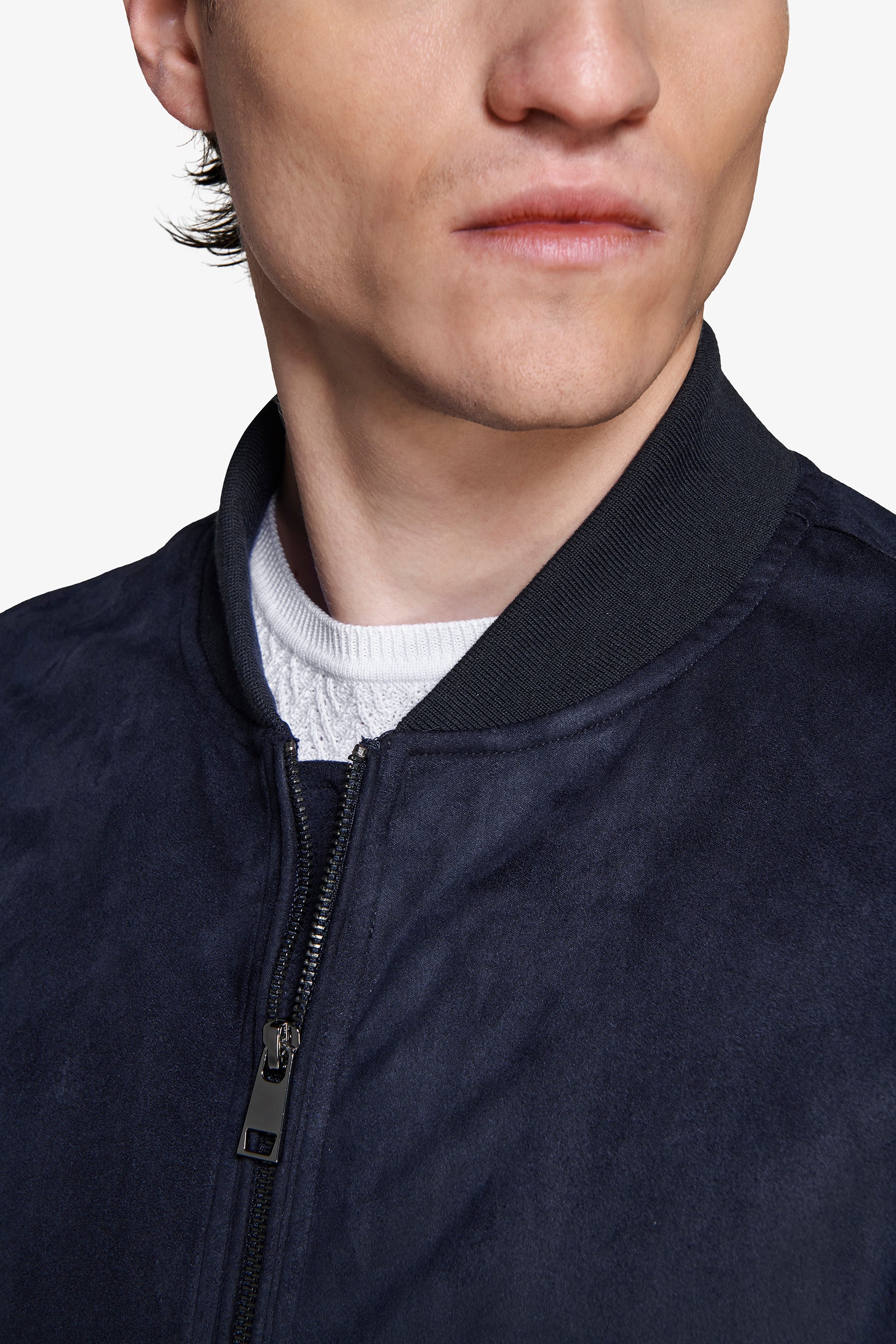 Cazadora bómber de cremallera completa en ante ecológico azul