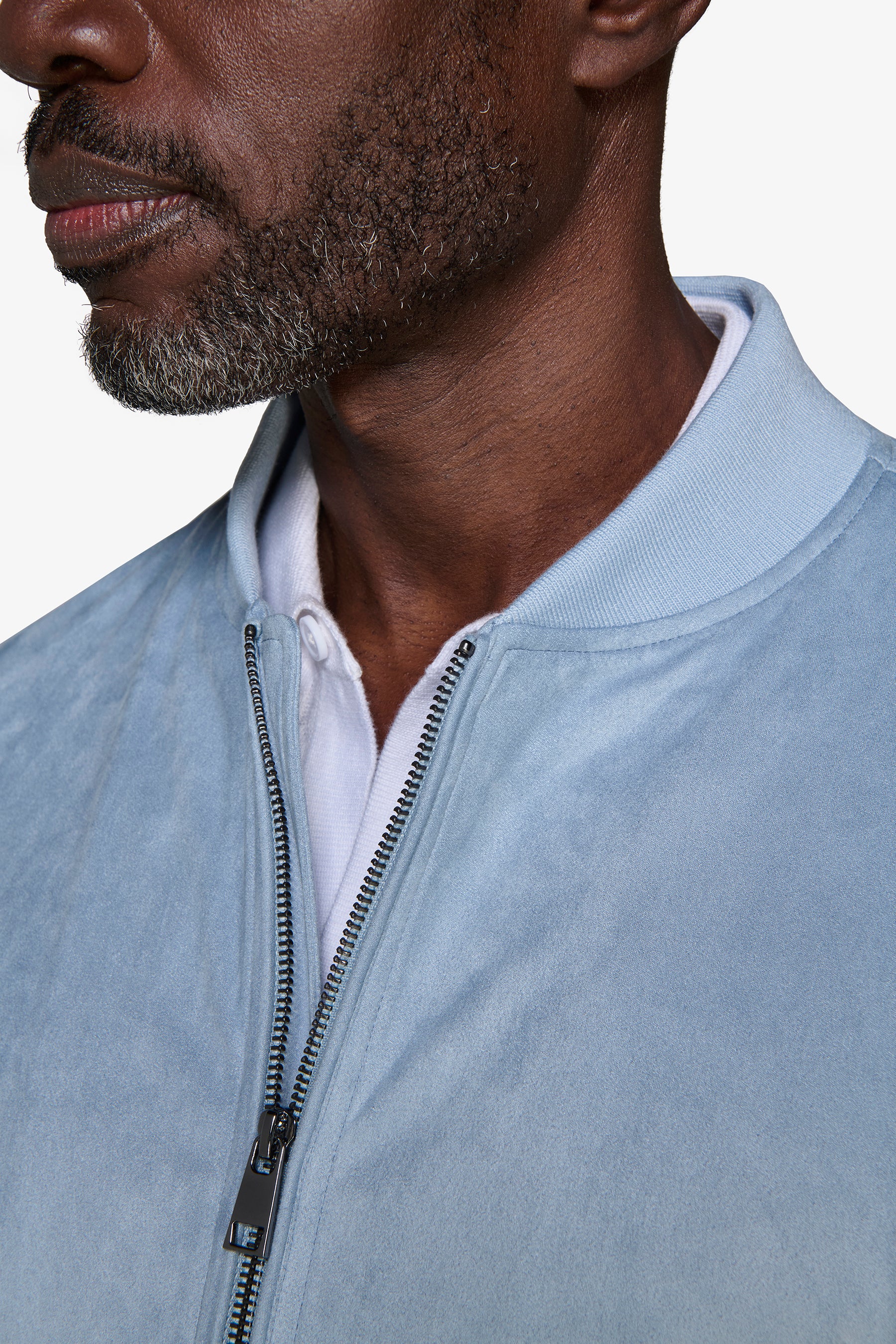 Cazadora bómber con cremallera completa en ante ecológico celeste
