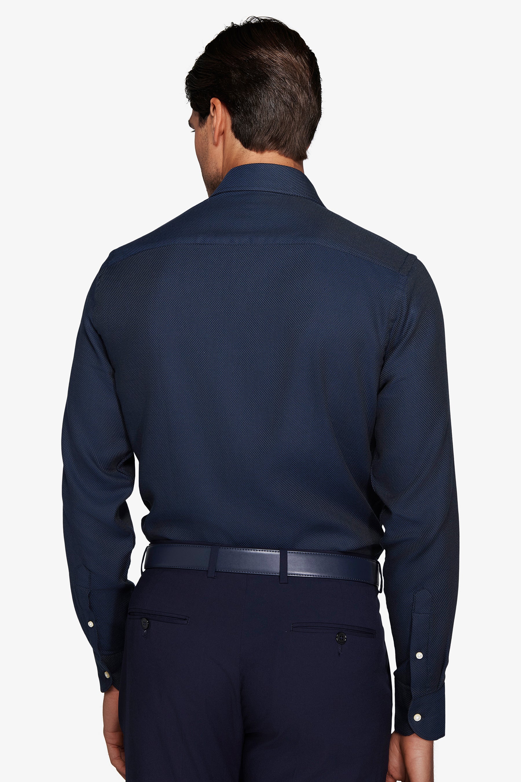 Camisa formal supercompacta, tejido labrado de color liso, corte slim, cuello francés.
