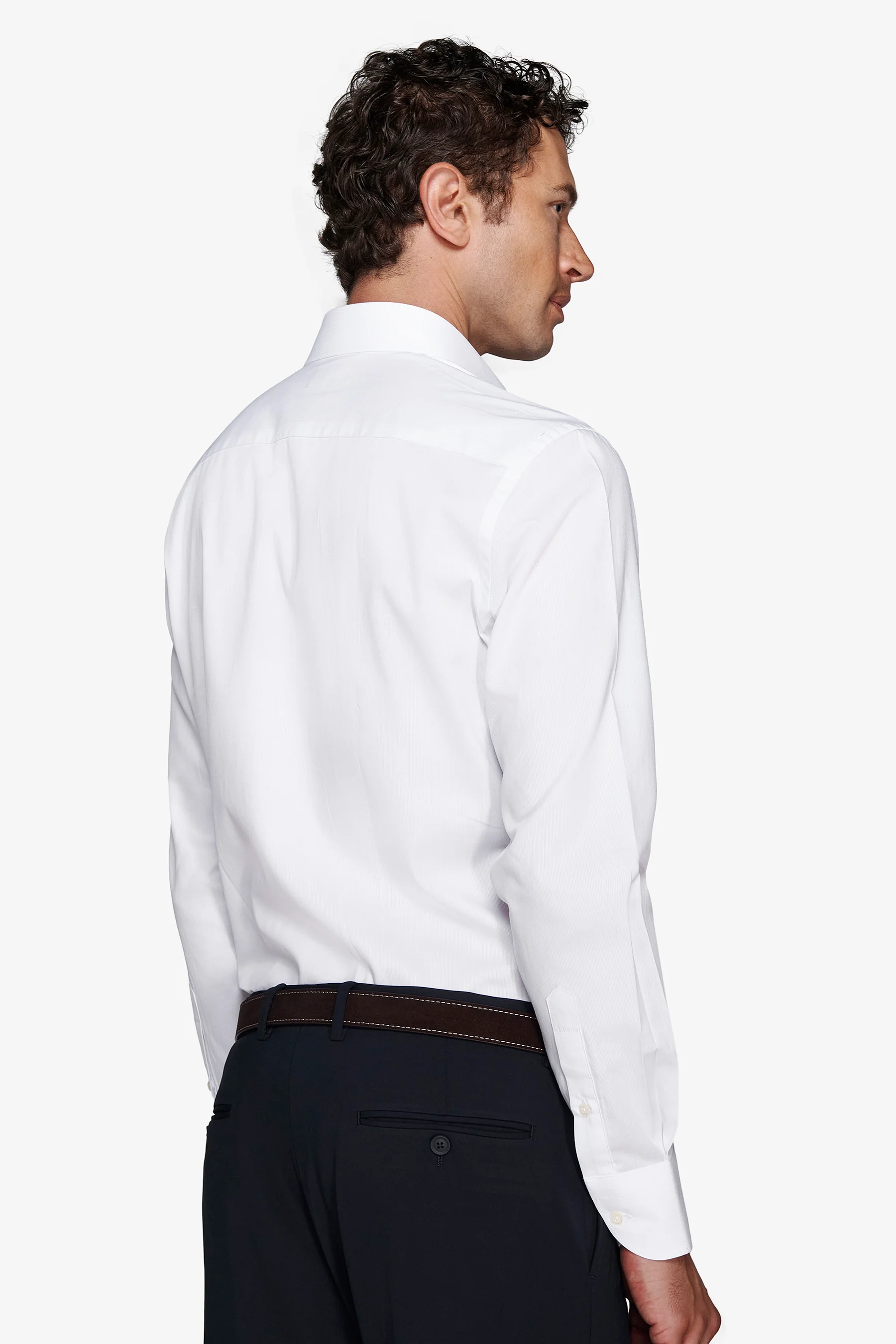 Camisa slim de piqué color blanco